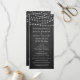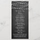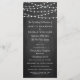 Simples, mas elegante, as luzes de cordas na coleção de casamentos de chalkboard é um design impressionante com luzes de cordas brancas adoráveis em um fundo de efeito de chalkboard, o que é perfeito para qualquer celebração de casamento moderna. Esses programas podem ser personalizados para sua ocasião especial e tornariam a ordem perfeita de serviço para seu casamento, chá de panela, festa de noivado, festa de aniversário e muitas outras ocasiões especiais. Adicione seu texto personalizado a este design usando as caixas "Editar este modelo design" no lado direito do item, ou clique no botão azul "Personalizar" para organizar o texto, alterar as fontes e cores e também adicionar informações ou imagens adicionais a este design.