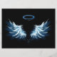 Asas claras, artísticas, de anjo azul sobre fundo preto. Asas de anjo.
