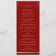 O Programa de Casamento de Astronomia da Lua Sun-Star Dourada Vermelha Mística apresenta um sol dourado, lua e estrelas com um quadro de ouro sobre um fundo vermelho escuro com a sua ordem de cerimônia na frente e na festa de casamento e obrigado no reverso em um roteiro dourado moderno. Personalize editando o texto nas caixas de texto fornecidas. Projetado para você por ©Evco Studio www.zazzle.com/store/evcostudio