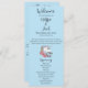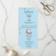 Um unicórnio branco em perfil é rodeado por flores cor-de-rosa, corais e lavandas contra um fundo azul macio.
