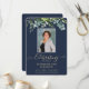 Personalize este programa simples e elegante com o nome, a foto e a mensagem do seu amado falecido. Honra e comemore a vida de seu amado com este modelo floral moderno, na moda, eucalipto, com elegante guião de ouro em um clássico fundo azul. Fácil de personalizar texto e texto. As nossas sentidas condolências e orações estão convosco durante este período muito difícil.