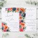 Elementos: flores vibrantes a aquarela e verde com nomes em um estilo divertido moderno manuscrito. Cores: Azul, marinho, azul empoeirado, laranja, terracota, siena queimada, vermelha, creme, verde. Temas: botânico, elegante, chic, moderno, romântico, casual, jardim, outono, primavera, verão, ao ar livre. Coleção: Coleção De Casamentos Botânicos Vermelho Cor De Laranja Azul Vibrante. Tipo de produto: Programa