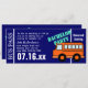 Barramento laranja e cor real de fundo. Crie seu próprio itinerário neste passe de ônibus, mude a cor do bilhete também. Personalizável para qualquer evento.
