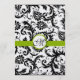 Vintage Cores damasco Florais Modernas de Preto e Branco com Convites de Casamento de Cortes Verdes da Apple. Perfeito para o Barroco Rococó, Renascença medieval, Art Deco Art Nouveau, Roaring 20s Gatsby, Casamentos vitorianos ou Themes de Casamento Farmário Elegante.
