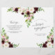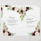 Nosso programa de casamento floral do jardim apresenta detalhes da sua cerimônia em letras elegantes, acentuadas com flores pintadas de aquarela em rosa-pincel, marfim, burgundy marsala e primavera verde. Personalize com os nomes da sua festa de casamento com campos de texto facilmente editáveis. Coordena-se com a nossa coleção de convites de casamento Blush Romance. Use os campos modelo para adicionar informações sobre sua cerimônia e noivado e clique em "Personalizar" para reposicionar elementos, se necessário. Personalize com uma mensagem personalizada no verso para completar seus programas de casamento.