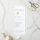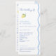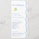 Este design do programa de casamento de moda apresenta uma mão de bolo de moda desenhada na frente com uma borda azul e azulejo branca no verso. Há um limão com solteiro de aquarela em cada página.