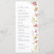 This boho meadow wildflower wedding program features soft pastel meadow florals arranged in a vertical, airy layout designed specifically for ceremony flow. The delicate watercolor wildflowers frame the content without overpowering the text, allowing the order of events and wedding party details to remain clear and elegant.