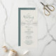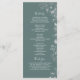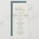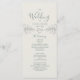 Elegante, boho, flor silvestre, botânica, programa de casamento verde-sábio com coração de corda prateada e rendas florais dintage.