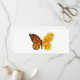Borboleta de monarca laranja com asa decorada com papoila amarela e vibrante da Califórnia em fundo branco.