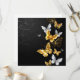 Borboletas Douradas, joias e brancas sobre fundo preto. Borboleta ouro.