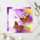 Laranja, borboletas monarcas detalhadas sobre luz, roxo, pitoresco, fundo pintado.