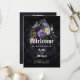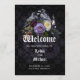 Este design tem uma academia escura com dois corvos cercados por um arranjo floral sobre um fundo preto. Você pode personalizar todo o texto para atender às necessidades do seu evento.
