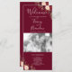 Burgundy Red Floral White Hand Lettered Script Elegant Photo Wedding Program para cerimônia de casamento
