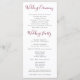 Elegante Burgundy, programa de casamento de flores de aquarela. Este design apresenta belas rosas de aquarela em cor-de-rosa-burlu e rosa-pincel. Uma fonte moderna de script é emparelhada com uma fonte serif. Personalize facilmente o seu dia especial.