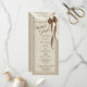 Programas de casamento com cartão de rack impresso com arco e local rústico com formato rústico com texto castanho, mude o texto como preferido.