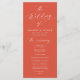 Este elegante programa de casamento mostra a frase "O Casamento de" em uma caligrafia branca graciosa em um espantoso fundo laranja Verona, criando um tom quente e convidativo para sua celebração. Personalize o programa com seus nomes, data do casamento e detalhes da cerimônia em letras brancas em negrito para um toque sofisticado e personalizado. O verso mostra os nomes do seu partido, acrescentando um nível extra de encanto ao seu evento. Com sua design moderna, simples e elegante, este programa de casamento é perfeito para casamentos formais e casuais de qualquer estação, melhorando o estilo e a atmosfera de seu dia especial.