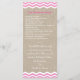 Cevrons cor-de-rosa e brancos em um sotaque de fundo ilustrado em uma burlap este programa de casamento. Role para baixo para ver o resto da coleção e se forem necessários itens adicionais para o seu casamento, entre em contato conosco em prettyfancyinvites@gmail.com com o seu pedido.