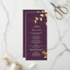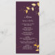 Programa Cardápio de Casamento Folhas Douradas Roxas Elegan