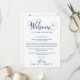 Essas cartas de boas-vindas e itinerário da marinha belle do sul são perfeitas para um casamento moderno. O design minimalista apresenta uma tipografia azul-marinho rústica, mas elegante, com floreios caprichosos para um visual simples. A frente do cartão apresenta uma carta de boas-vindas e a parte de trás apresenta o itinerário do casamento. Essas notas são perfeitas para casamentos de destino e sacolas de boas-vindas para hóspedes de hotéis.