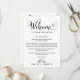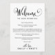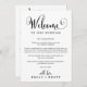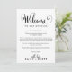 Estas cartas de boas-vindas e itinerário de casamento southern belle são perfeitas para um casamento moderno. O design minimalista apresenta uma tipografia preta e branca rústica, mas elegante, com floreios caprichosos para um visual simples. A frente do cartão apresenta uma carta de boas-vindas e o verso apresenta o itinerário do casamento. Essas notas são perfeitas para casamentos de destino e sacolas de boas-vindas para hóspedes de hotéis.