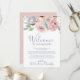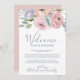 Estas cartas de boas-vindas e itinerário com florais rosa empoeirado são perfeitas para um casamento de primavera ou verão. O design floral romântico apresenta flores lilás roxo, rosa e pêssego dispostas em um lindo buquê pastel suave. A frente do cartão apresenta uma carta de boas-vindas e a parte de trás apresenta o itinerário do casamento. Essas notas são perfeitas para casamentos de destino e sacolas de boas-vindas de hóspedes de hotel.