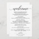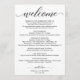 Seja bem-vindo ao seu convidado com esta bela carta - excelente para sacos de presentes de hotel para convidados fora da cidade! Edite facilmente a agenda diária, os nomes e a data! Esta design apresenta uma bela fonte preta clássica que é perfeita para qualquer casamento!