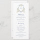 Elegante Floral White Greenery Crest Monogramas. Ordem de Serviço de Casamento Tradicional. Programa de Paixão de Monograma de Casamento Azul Dusty