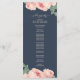 Elegante programa de casamento com uma design rosa-rosa vintage em um fundo azul-escuro chic, com uma escrita elegante e uma tipografia moderna. Basta adicionar os detalhes do programa de casamento. Se precisar de ajuda ou produtos correspondentes, entre em contato conosco através da nossa loja. Estamos felizes em ajudá-lo a fazer seu casamento o dia mais bonito!