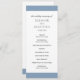 Programa moderno de casamento azul empoeirado com uma banda ousada no topo e no fundo. Seus nomes estão em uma fonte serif clássica e seus detalhes estão em uma combinação de uma fonte sans serif moderna e um script elegante. A parte de trás tem uma banda ao longo do fundo junto com o seu monograma. Esta simples e mínima design com a redação tradicional é excelente para um casamento formal.