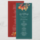 Celebre o seu casamento de outono com este elegante programa de duas faces com folhagem de outono em tons ricos de verde e laranja queimada. Este design rústico boho inclui espaço para a ordem da cerimônia, festa de casamento e uma mensagem de agradecimento. Perfeito para casamentos ao ar livre, na floresta ou no celeiro, adiciona um toque pessoal e elegante à sua celebração.