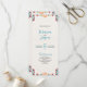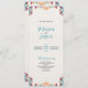 Este design do Programa de Casamento Flamental Botânico Colorido da Fiesta Mexicana apresenta um layout vertical com padrões florais de ornamentado no topo e no fundo, criando um espaço lindamente enquadrado para texto no centro. Os motivos simétricos combinam cores ousadas — como vermelho, lacrimejo, laranja, roxo e amarelo —, apresentando flores, folhas e videiras curvas que lhe dão um olhar vivo, mas elegante. O fundo central é um branco suave, texturizado, que oferece uma canvas perfeita para convites, programas ou impressões decorativos.