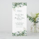 O Elegante Eucalyptus agarra a frente e atrás deste programa de casamento. O guião e o ampersand definem um tema tradicional, mas moderno, para o dia do seu casamento. Personalize todas as informações, incluindo detalhes da cerimônia e assistentes no verso com a mesma fonte do script