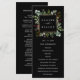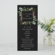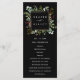 Este programa de casamento apresenta eucalipto pintado à aquarela, folhas verdes, bagas vermelhas, ramos de pinheiro com uma moldura quadrada em dourado falso sobre um fundo preto. Para personalização avançada deste design, clique no link "Personalizar ainda mais". Itens correspondentes também estão disponíveis.