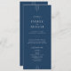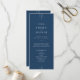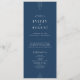 Este programa de casamento da Coleção Everly apresenta um design art déco refinado em azul marinho profundo com tipografia branca nítida e acentos de linha elegantes. O layout editorial e os detalhes geométricos estabelecem um clima clássico, moderno e retrô.