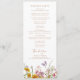O Programa de Casamento de Flores Selvagens Coloridas apresenta flores bonito em cor laranja, amarela, roxa e rosa em fundo branco com suas informações personalizadas sobre o programa. Personalize editando o texto nas caixas de texto. Projetado para você por ©Evco Studio www.zazzle.com/store/evcostudio