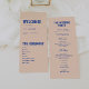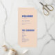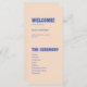 Programa Moderno de Casamento de Beige Azul. Personalize com nomes de noivas e noivos, sua localização e data de casamento, ordem de serviço e nomes de festas noivas no fundo.