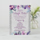 Conduza seus convidados por todos os momentos significativos com este programa de casamento em prata com flores roxas, cuidadosamente projetado para uma celebração refinada. A frente apresenta uma obra de arte floral de casamento com lavanda e pansy em tons ricos de ameixa, lilás e violeta suave, criando uma estética romântica de casamento de primavera em lilás e ameixa. Contra um cenário botânico luxuoso e elegante em violeta, os detalhes do casamento em letra elegante adicionam sofisticação atemporal.