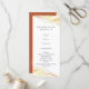 Moldura de Lavagem de Aquarela no Deserto Boêmio, programa de casamento. Lista de texto do modelo para ordem de eventos da cerimônia, festa de casamento e nota de agradecimento. Cor de fundo mostrada em laranja enferrujado coordenado escuro, pode ser personalizada.