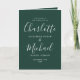Programa de casamento com letra de assinatura verde esmeralda com tipografia moderna e elegante. Este programa de casamento elegante pode ser personalizado com as informações do seu dia especial de casamento. Concebido por Thisisnotme©
