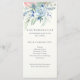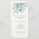 Este programa de casamento de moda apresenta flores de peônia azuis e cor-de-rosa, com um fundo feito para parecer um papel branco de aquarela. Usamos arte de LABFcreations.