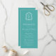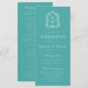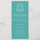 Este elegante programa de casamento inspirado em vintage apresenta um par de iniciais monográficas brancas em letra serif aberta acima e abaixo de uma linha divisória e rodeadas por uma crista botânica de arte em linha num fundo turquesa.