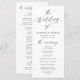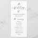 Celebre seu dia especial em estilo com este elegante programa de casamento que apresenta "o casamento de" em uma caligrafia negra graciosa em um fundo branco clássico. Perfeito para casamentos em qualquer época e adequado para comemorações formais e casuais, este design eterno permite que casais personalizem a frente com seus nomes, data de casamento e detalhes da cerimônia em letras negros. O verso oferece espaço para mostrar os nomes do seu partido noivo, acrescentando um toque pessoal e atencioso. Com sua estética moderna, simples e sofisticada, este programa de casamento é uma bela maneira de manter seus convidados informados enquanto aumenta a elegância do dia do seu casamento.