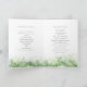 Arte esplêndida de abstrato verde-verde-de-vidro verde-verde-verde-com cor d'água em um programa de casamento branco. Edite estes programas de casamento com seu próprio nome, datas, texto da cerimônia, assistentes de festa de casamento e obrigados. Um programa simples, mas elegante, simplesmente substitua o texto de amostra pelos detalhes de suas informações de casamento e dobre programas ao meio na entrega. Programa de cerimônia de casamento de vegetação moderna. © Quadro original e design por Sarah Trett. www.sarahtrett.com para www.mylittleedenweddings.com