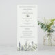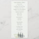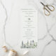 Crie lindos programas de casamento personalizados que se coordenam com o seu casamento em floresta ou com o seu evento especial de alojamento em montanha. Eles têm um estilo simples, mas elegante, com uma ilustração acentos de uma floresta aquarela de pinheiros altos ou de árvores verdes em tons de verde-sábio, cinza e verde-claro. O estilo aquoso suave tem uma calma tranquila qualidade, que vos lembrará de ver o nevoeiro subir sobre uma taça de madeira. Clássica, elegante, em uma coordenação escura verde-senso, soletra seus detalhes de casamento. Instruções gerais para adicionar seu texto a esses programas de casamento: há duas fontes usadas no programa com a fonte do script para os nomes do pessoas e a fonte impressão usada para os vários títulos e eventos. Para ter o mesmo aspecto que na amostra, use todos os bonés para esses itens no impressão, embora não tenhamos usado bonés para títulos de música ou o título de seleção de leitura. Precisa incluir informações adicionais ou mudar o texto deste convite? Basta selecionar a opção "personalizá-lo" para retrabalhar o texto de acordo com as suas necessidades.