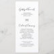 Deixe seus convidados seguirem a ordem de sua cerimônia de casamento com o programa de casamento da Daisy Branca e Pearls. Personalize-o com os nomes pessoais da noiva e do noivo e os detalhes específicos da cerimônia de casamento e a linha de tempo. Este elegante programa de casamento botânico apresenta uma fotografia floral próxima de um colar branco de flores margaridas e pérolas brancas.