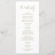 Este programa de casamento de caligrafia em ouro é perfeito para um casamento moderno. O design apresenta uma tipografia de ouro elegante, mas rústica, para um simples aspecto mínimo. Inclua o nome da noiva e do noivo, a data e o local do casamento, a mensagem do obrigado, a ordem do serviço, a festa noiva e um memorial "em memória amorosa" opcional.