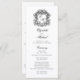 Este elegante programa de casamento apresenta uma crista no topo com as iniciais monográficas da noiva e do noivo na letra da escrita formal do rico.