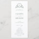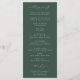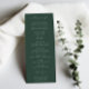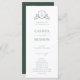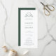 BRUNSWICK CREST, programa de casamento. Características, tipografia verde elegante e verde botânico e crista floral adornada na frente com tipografia branca e cor verde de fundo na parte de trás.