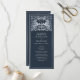 Descubra a magia do seu grande dia! Estes programas de casamento de fantasia medieval apresentam um leão real rodeado por intrincados florais prateados e um monograma contra um fundo azul marinho, misturando elegância com um toque de grandiosidade. Um nome perfeito para a sua celebração de conto de fadas! A prata que figura neste item NÃO é uma folha real e é impressa em cores planas.