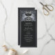 Descubra a magia do seu grande dia! Estes programas de casamento de fantasia medieval apresentam um leão real rodeado por intrincados florais de prata e um monograma contra fundo negro, misturando elegância com um toque de grandioso. Um nome perfeito para a sua celebração de conto de fadas! A prata que figura neste item NÃO é uma folha real e é impressa em cores planas.